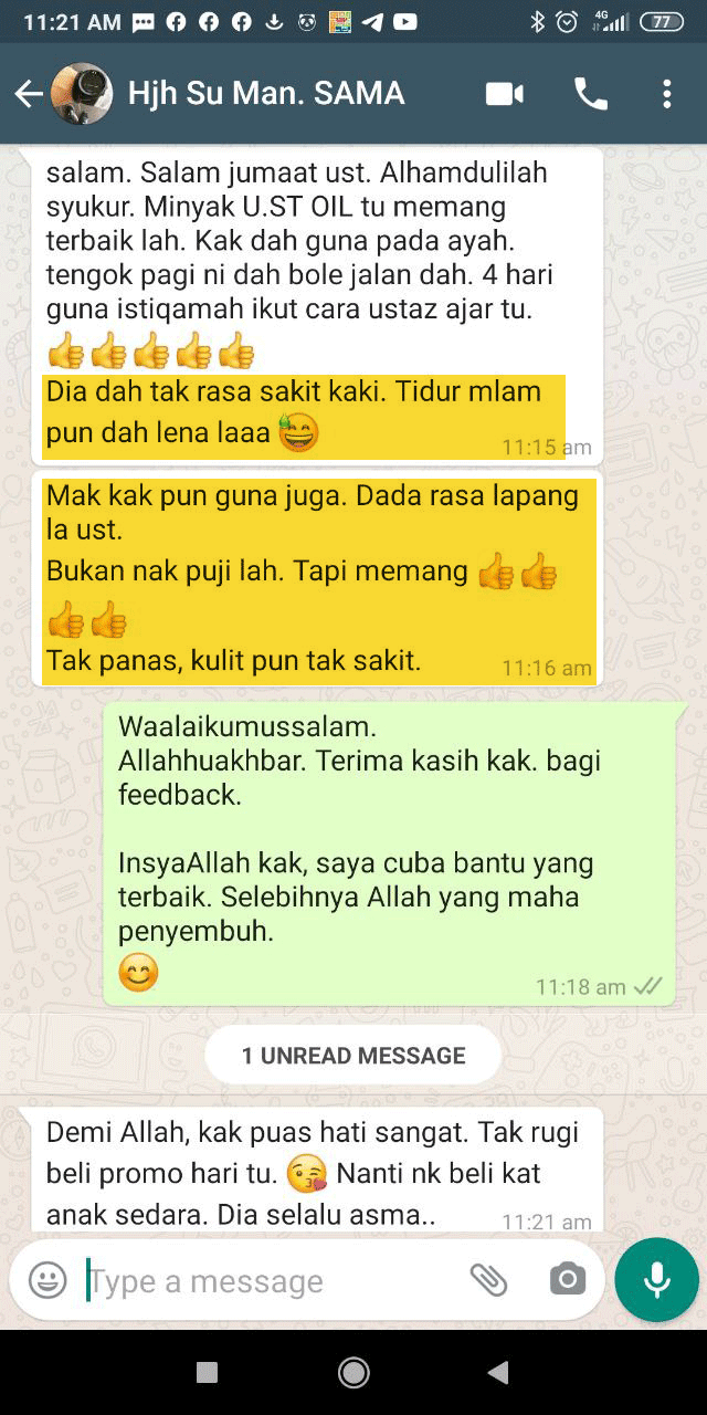 Alhamdulillah, lepas amalkan UST OIL, derita sihir makin pulih, sakit sendi saraf pun dah hilang!
